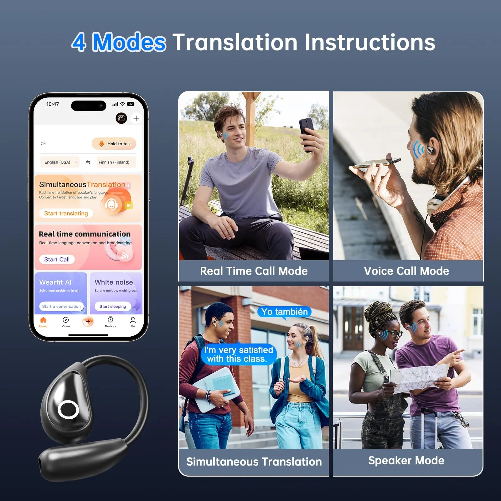 Open AI Translation Earbuds: Equipped with advanced AI translation technology, these sleek, open earbuds deliver real-time, two-way translation across 144 languages. The ergonomic, lightweight design ensures all-day comfort, while Bluetooth 5.4 guarantees stable connectivity. Features include offline mode, 60-hour battery life, and smart noise cancellation for crisp audio. Perfect for meetings, tours, or casual chats—unlock a world without language limits.